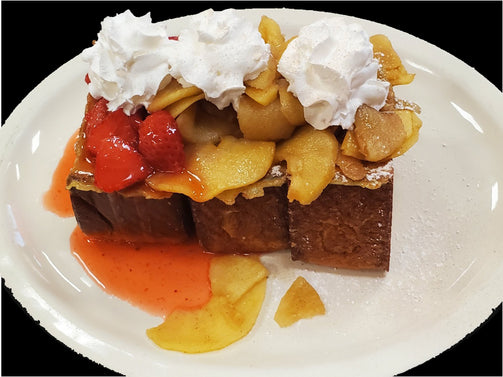 Stuffed French Toast stuffed with a mascarpone cheese blend and topped with fruit